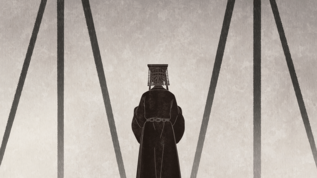 It’s in this moment that Lakan makes his (unpleasant) appearance once again in Jinshi‘s office, and the sense of oppression and uneasiness that his presence brings along is, once again, visually conveyed via low-angled shots.