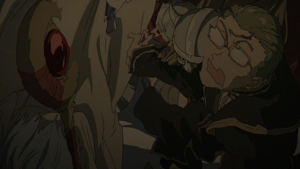 The thoughtful sense of rhythm that permeates every sequence and modulates its pacing, is definitely another major player in establishing the show’s core identity. The contemplative nature of Frieren‘s direction was a distinctive trait of season one, and served as a very deliberate tool to control the flow of information on the screen, allowing the eye of the viewer to rest on specific shots, or redirecting the focus on specific portions of the frame.