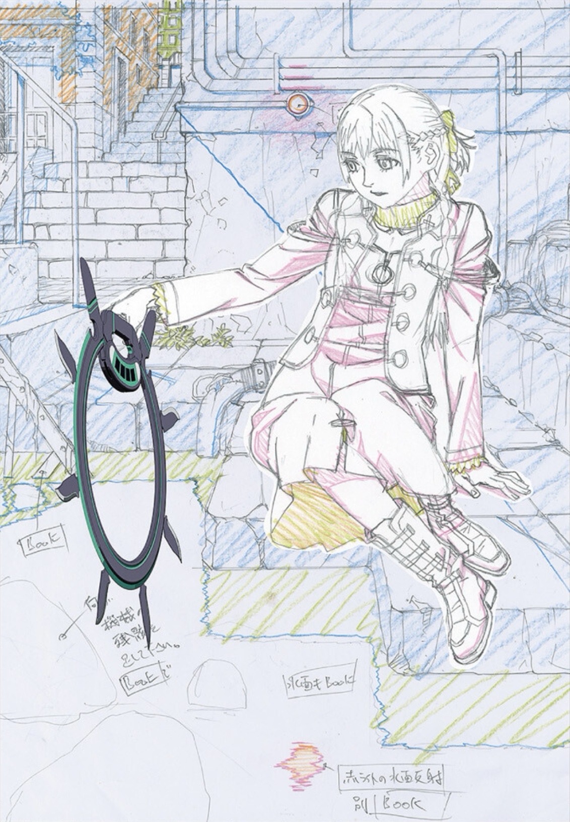 Umetsu: Did I really? (laughs). For Virgin Punk, I was really mindful of getting all the pre-production properly wrapped up before starting animation. “There’s no settei so I can’t draw it” is the number one excuse animators use (laughs), so to make sure there would be no room for that, I wanted everything to be fully set-up beforehand. Shinya-kun worked hard and completed all the designs for the guns and the Boomerang in time.