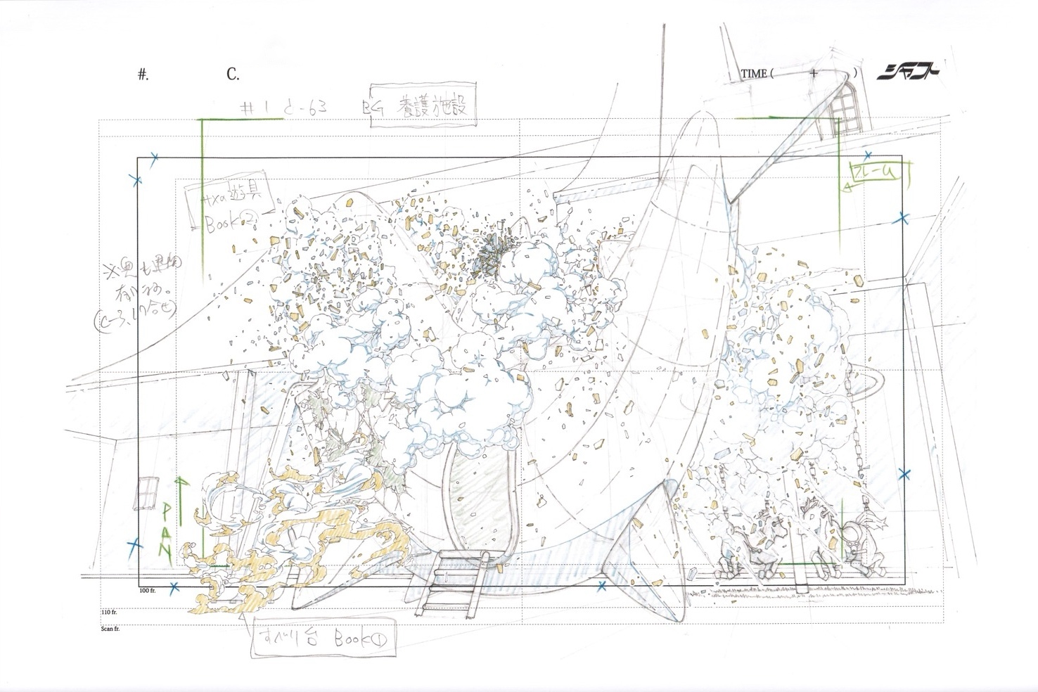Takahashi: No… to put it bluntly, it makes it easier for me working on shorter cuts. I think it’s perfectly fine to make longer, continuous ones if there’s an intention behind them, but with most of the long cuts you see nowadays, I often can’t find one. Umetsu-san‘s approach of cutting cleanly sequence by sequence, almost in a live-action fashion, is at least psychologically much less of a burden. When I’m given storyboards to work on, just seeing “10-something seconds” written there is enough to make me think: “Ugh, what a pain” (laughs).
